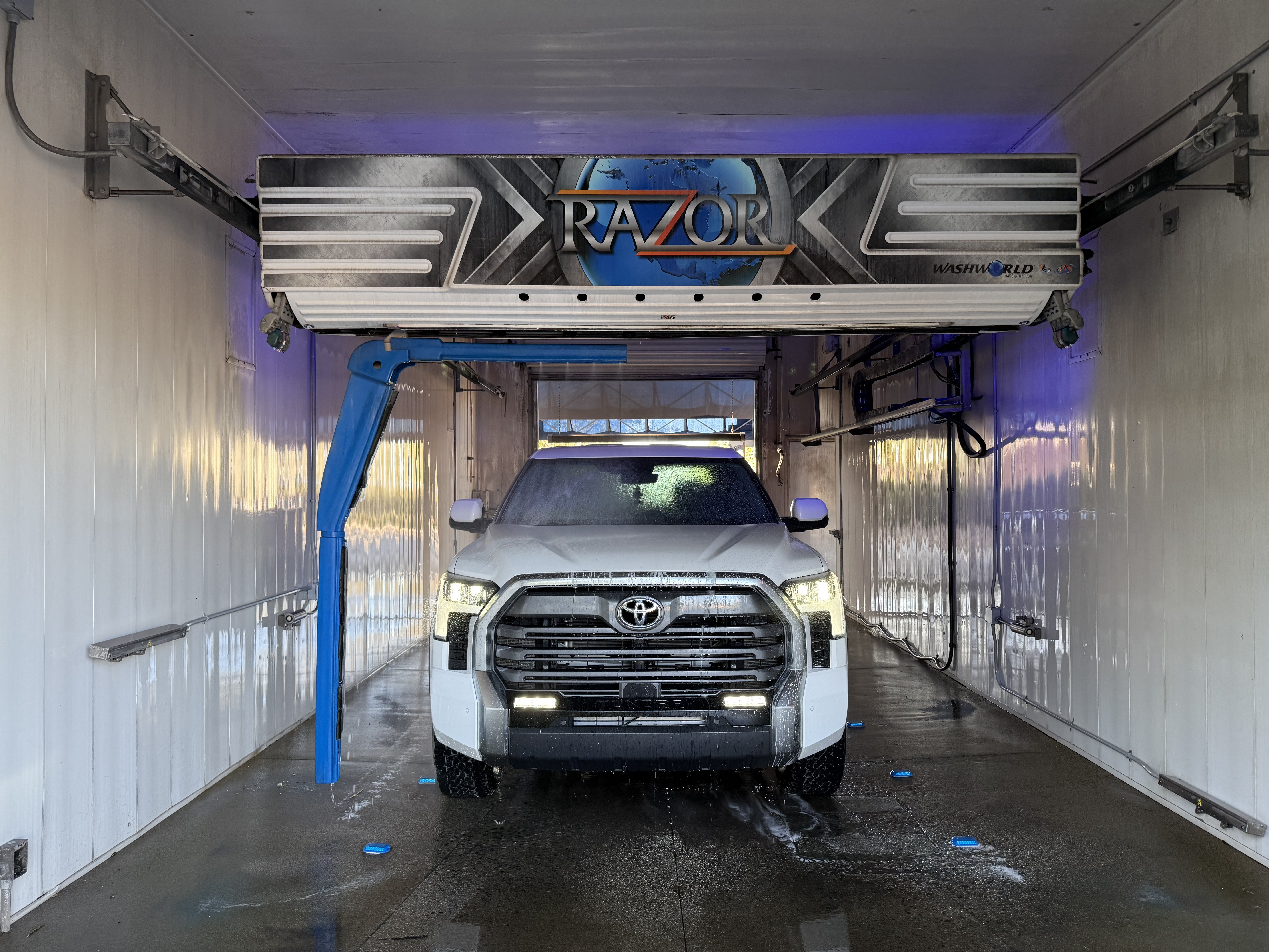 At Chino Valley Auto Spa, our WashWorld Razor is the heart of our touch-free car wash experience. This state-of-the-art in-bay automatic system combines durability, precision, and customer satisfaction in every wash. The Razor utilizes WashWorld’s VS2 vehicle sizing system to measure vehicle dimensions (front/rear and sides) without intrusive guide rails or floor treadles. Additionally, its “virtual attendant” logic can adapt to irregular shapes, mirrors, bike racks, and more, enabling reliable washes even with odd-shaped and oversized vehicles. The WashWorld Razor is also capable of washing dually trucks.